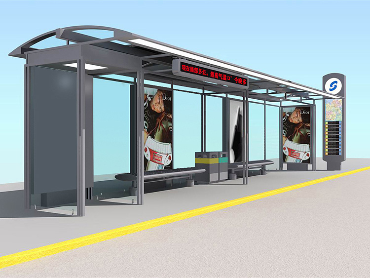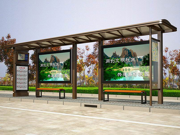 公交車候車亭一般是與公交站牌相配套的,為方便公交乘客候車時遮陽、防雨等,在車站、道路兩旁或綠化帶的港灣式公交停靠站上建設的交通設施。由于城市公交的日益發達,候車亭已發展成為城市一個不可或缺的重要組成部分,設計精美的候車亭也成為了城市一道美麗的風景。一般候車亭棚體主要頂棚、立柱、頂弓、廣告燈箱和坐凳組成,也有用隔板來代替廣告燈箱的。