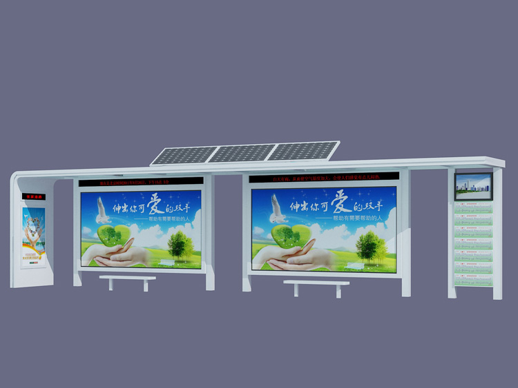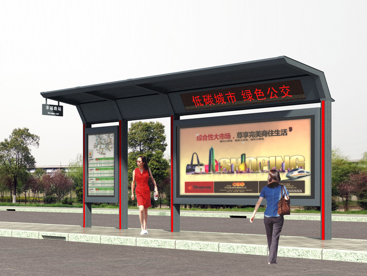 公交候車亭,一般匹配巴士乘客的方便,同時等待日曬,雨淋等,在車站,道路或綠化帶海底巴士站及巴士時間表交通設施建設。日益發(fā)達的城市公共交通,公共汽車候車亭,發(fā)展成為一個城市不可或缺的重要組成部分,設計精美的公交候車亭也成為城市的一道亮麗的風景。一般庇護所的主要支柱,屋頂和廣告燈箱更換隔板的隔板也有用。