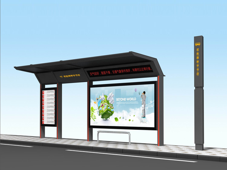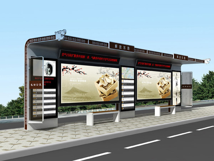 公交候車亭,一般是與公交站牌相配套的,為方便公交乘客候車時(shí)遮陽(yáng)、防雨等,在車站、道路兩旁或綠化帶的港灣式公交停靠站上建設(shè)的交通設(shè)施。由于城市公交的日益發(fā)達(dá),公交候車亭已發(fā)展成為城市一個(gè)不可或缺的重要組成部分,設(shè)計(jì)精美的公交候車亭也成為了城市一道美麗的風(fēng)景。 一般公交候車亭主要由支柱、頂棚和隔板組成,也有用廣告燈箱更換隔板的