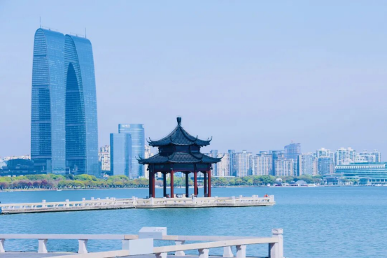 清晨,環(huán)金雞湖步道躍動(dòng)著身影,新啟用的跑者驛站讓湖濱跑道更友好;午后,皮劃艇與槳板在碧波中劃開“白練”,市民借水上運(yùn)動(dòng)感受城市激情;傍晚,左岸158街區(qū)在斜暉下散發(fā)著時(shí)尚氣息,年輕人穿梭其間,感受城市脈動(dòng)……夜間,金雞湖畔燈光璀璨,游船穿梭,昔日的漁歌之地已然成為蘇州乃至長(zhǎng)三角地區(qū)的“城市會(huì)客廳”。
