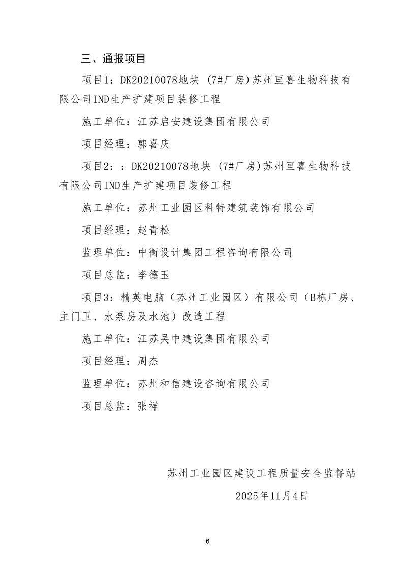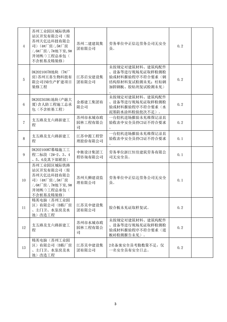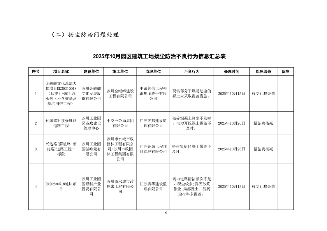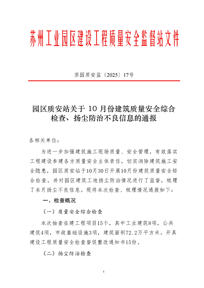 園區(qū)質安站關于10月份建筑質量安全綜合檢查、揚塵防治不良信息的通報