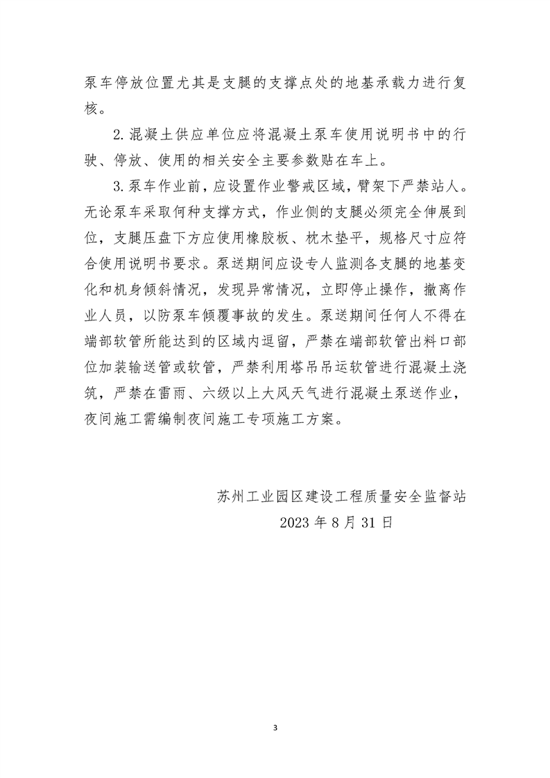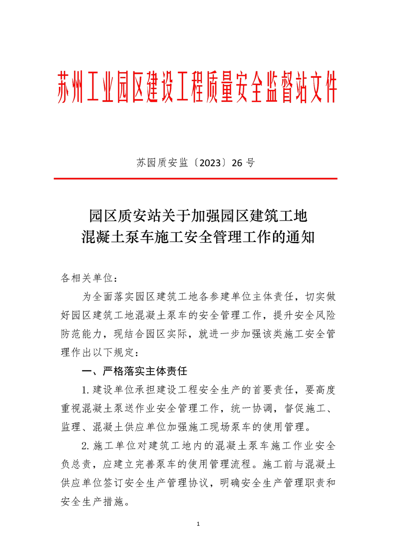 園區質安站關于加強園區建筑工地混凝土泵車施工安全管理工作的通知