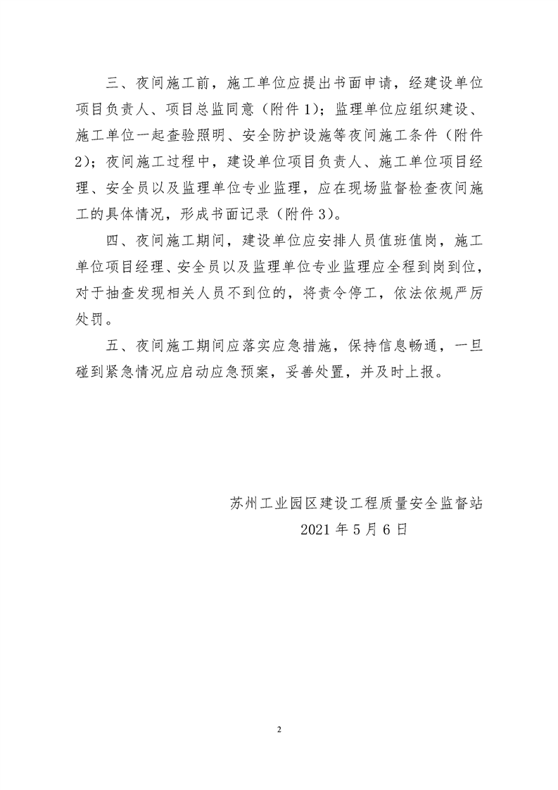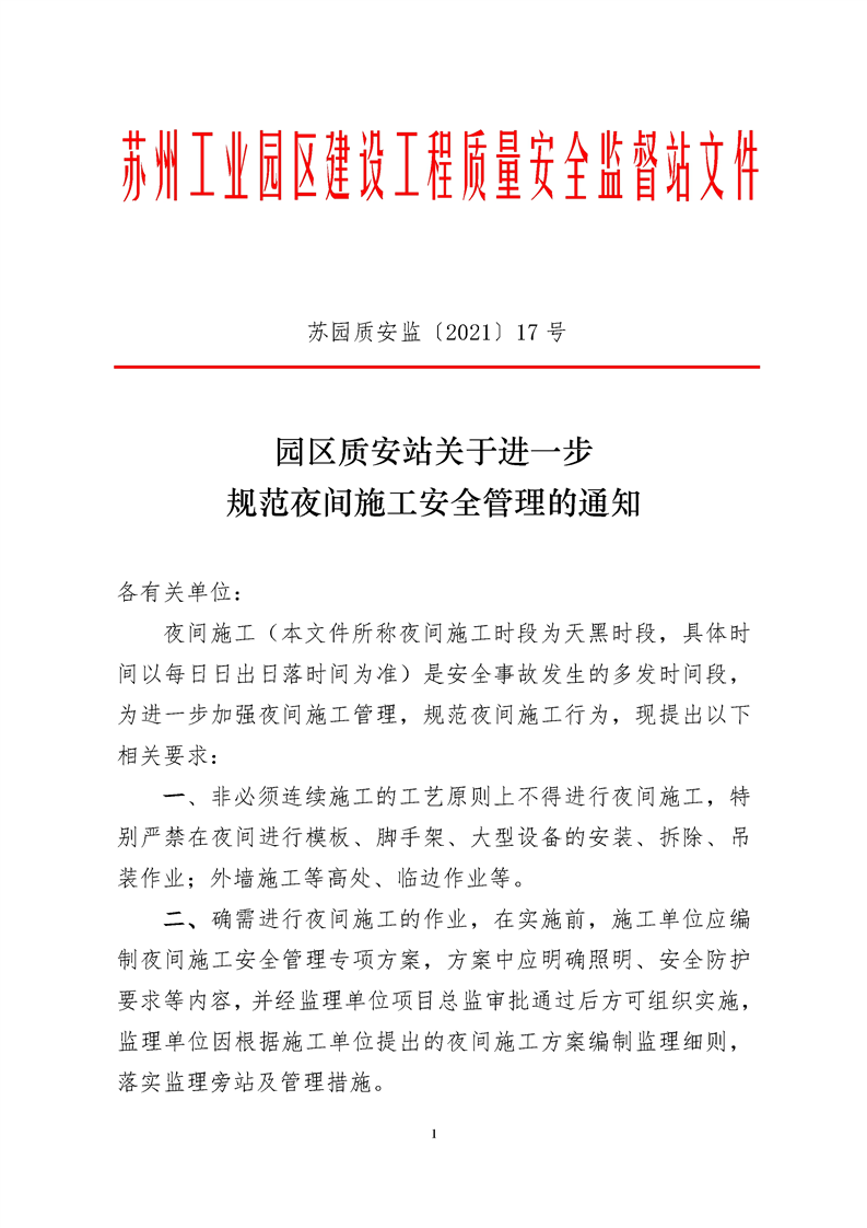 園區(qū)質(zhì)安站關(guān)于進(jìn)一步規(guī)范夜間施工安全管理的通知