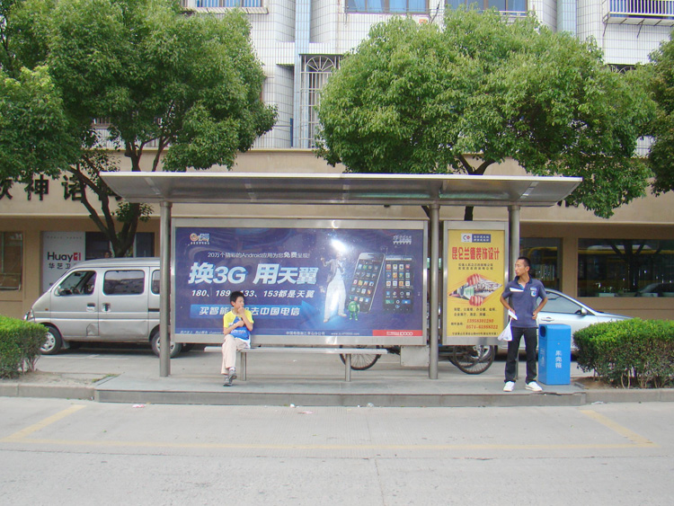 公交車候車亭一般是與公交站牌相配套的,為方便公交乘客候車時遮陽、防雨等,在車站、道路兩旁或綠化帶的港灣式公交停靠站上建設的交通設施。由于城市公交的日益發(fā)達,候車亭已發(fā)展成為城市一個不可或缺的重要組成部分,設計精美的候車亭也成為了城市一道美麗的風景。 一般候車亭棚體主要頂棚、立柱、頂弓、廣告燈箱和坐凳組成,也有用隔板來代替廣告燈箱的。
