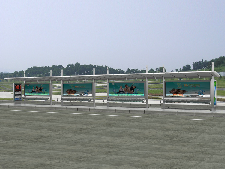 公交車候車亭一般是與公交站牌相配套的,為方便公交乘客候車時遮陽、防雨等,在車站、道路兩旁或綠化帶的港灣式公交停靠站上建設的交通設施。由于城市公交的日益發達,候車亭已發展成為城市一個不可或缺的重要組成部分,設計精美的候車亭也成為了城市一道美麗的風景。 一般候車亭棚體主要頂棚、立柱、頂弓、廣告燈箱和坐凳組成,也有用隔板來代替廣告燈箱的。