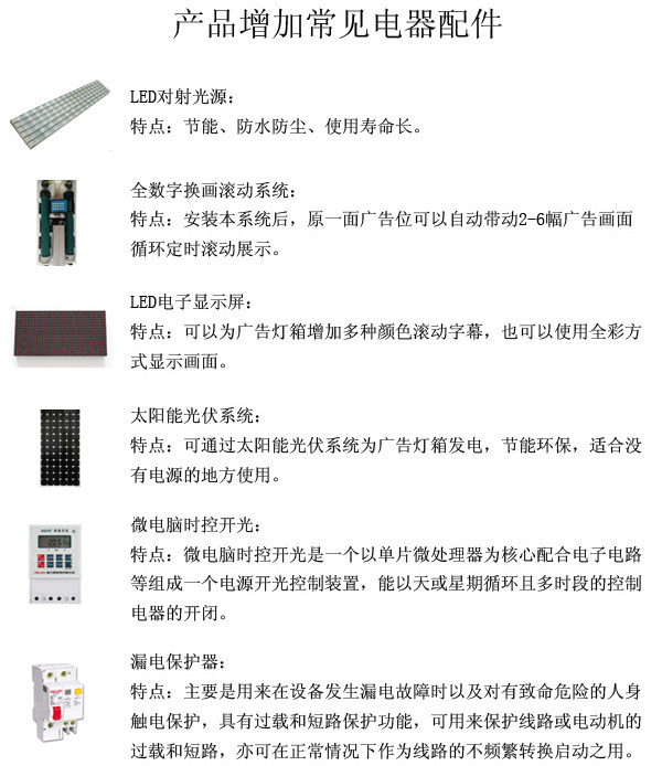 我公司專業生產公交站臺、候車亭、不銹鋼公交候車亭、鋁合金公交候車亭、仿古候車亭、公共自行車棚、公共自行車亭、自行車服務亭、出租車的士亭、公交電子站牌、宣傳欄燈箱、閱報欄燈箱、崗亭、指路牌、路名牌燈箱、LED滾動燈箱、廣告垃圾箱、戶外大型廣告燈箱等幾十種廣告設備。