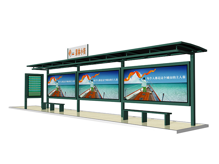 公交車候車亭一般是與公交站牌相配套的,為方便公交乘客候車時(shí)遮陽(yáng)、防雨等,在車站、道路兩旁或綠化帶的港灣式公交停靠站上建設(shè)的交通設(shè)施。由于城市公交的日益發(fā)達(dá),候車亭已發(fā)展成為城市一個(gè)不可或缺的重要組成部分,設(shè)計(jì)精美的候車亭也成為了城市一道美麗的風(fēng)景。 一般候車亭棚體主要頂棚、立柱、頂弓、廣告燈箱和坐凳組成,也有用隔板來(lái)代替廣告燈箱的。