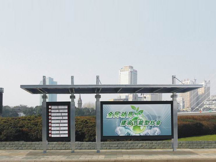 公交車候車亭一般是與公交站牌相配套的,為方便公交乘客候車時遮陽、防雨等,在車站、道路兩旁或綠化帶的港灣式公交停靠站上建設的交通設施。由于城市公交的日益發達,候車亭已發展成為城市一個不可或缺的重要組成部分,設計精美的候車亭也成為了城市一道美麗的風景。 一般候車亭棚體主要頂棚、立柱、頂弓、廣告燈箱和坐凳組成,也有用隔板來代替廣告燈箱的。