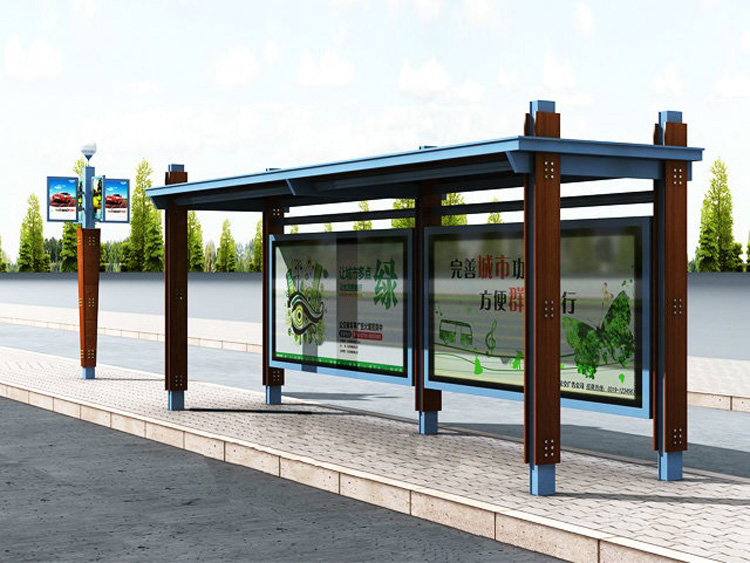 公交車候車亭一般是與公交站牌相配套的,為方便公交乘客候車時遮陽、防雨等,在車站、道路兩旁或綠化帶的港灣式公交停靠站上建設的交通設施。由于城市公交的日益發達,候車亭已發展成為城市一個不可或缺的重要組成部分,設計精美的候車亭也成為了城市一道美麗的風景。 一般候車亭棚體主要頂棚、立柱、頂弓、廣告燈箱和坐凳組成,也有用隔板來代替廣告燈箱的。