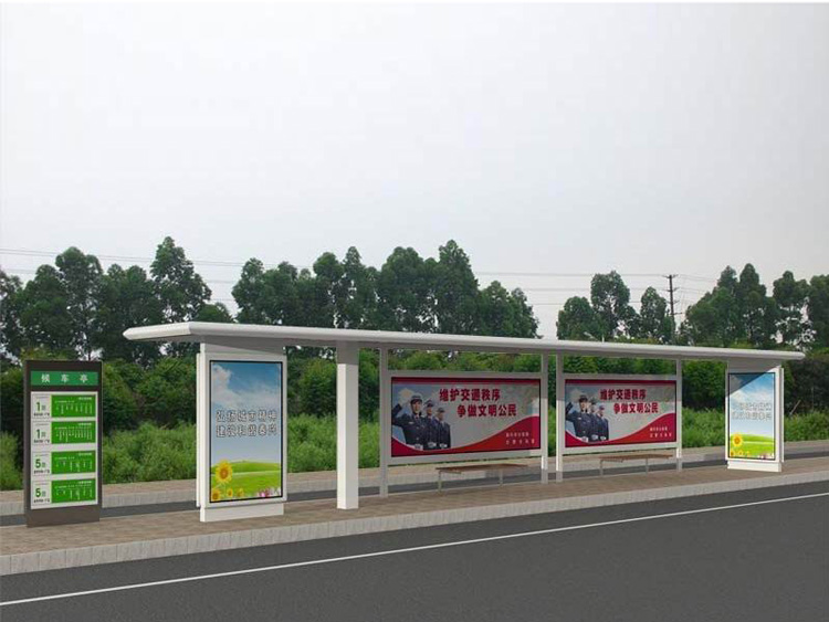 公交車候車亭一般是與公交站牌相配套的,為方便公交乘客候車時(shí)遮陽(yáng)、防雨等,在車站、道路兩旁或綠化帶的港灣式公交停靠站上建設(shè)的交通設(shè)施。由于城市公交的日益發(fā)達(dá),候車亭已發(fā)展成為城市一個(gè)不可或缺的重要組成部分,設(shè)計(jì)精美的候車亭也成為了城市一道美麗的風(fēng)景。 一般候車亭棚體主要頂棚、立柱、頂弓、廣告燈箱和坐凳組成,也有用隔板來(lái)代替廣告燈箱的。