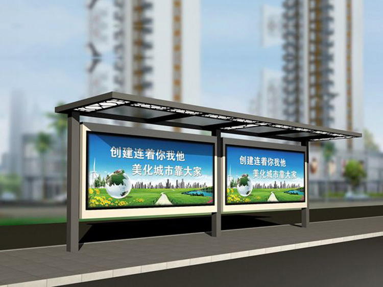 公交車候車亭一般是與公交站牌相配套的,為方便公交乘客候車時遮陽、防雨等,在車站、道路兩旁或綠化帶的港灣式公交?空旧辖ㄔO的交通設施。由于城市公交的日益發達,候車亭已發展成為城市一個不可或缺的重要組成部分,設計精美的候車亭也成為了城市一道美麗的風景。 一般候車亭棚體主要頂棚、立柱、頂弓、廣告燈箱和坐凳組成,也有用隔板來代替廣告燈箱的。