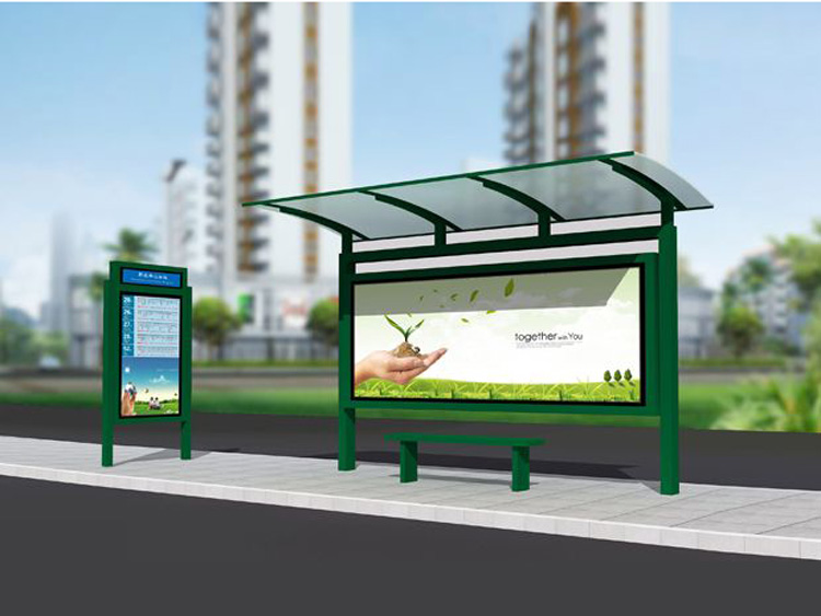 公交車候車亭一般是與公交站牌相配套的,為方便公交乘客候車時遮陽、防雨等,在車站、道路兩旁或綠化帶的港灣式公交停靠站上建設的交通設施。由于城市公交的日益發達,候車亭已發展成為城市一個不可或缺的重要組成部分,設計精美的候車亭也成為了城市一道美麗的風景。 一般候車亭棚體主要頂棚、立柱、頂弓、廣告燈箱和坐凳組成,也有用隔板來代替廣告燈箱的。