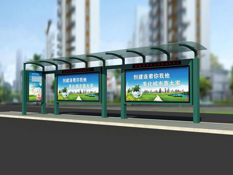 公交車候車亭一般是與公交站牌相配套的,為方便公交乘客候車時遮陽、防雨等,在車站、道路兩旁或綠化帶的港灣式公交停靠站上建設(shè)的交通設(shè)施。由于城市公交的日益發(fā)達,候車亭已發(fā)展成為城市一個不可或缺的重要組成部分,設(shè)計精美的候車亭也成為了城市一道美麗的風(fēng)景。 一般候車亭棚體主要頂棚、立柱、頂弓、廣告燈箱和坐凳組成,也有用隔板來代替廣告燈箱的。