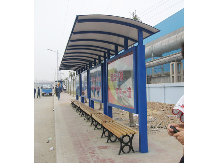 公交車候車亭一般是與公交站牌相配套的,為方便公交乘客候車時遮陽、防雨等,在車站、道路兩旁或綠化帶的港灣式公交停靠站上建設的交通設施。由于城市公交的日益發達,候車亭已發展成為城市一個不可或缺的重要組成部分,設計精美的候車亭也成為了城市一道美麗的風景。 一般候車亭棚體主要頂棚、立柱、頂弓、廣告燈箱和坐凳組成,也有用隔板來代替廣告燈箱的。
