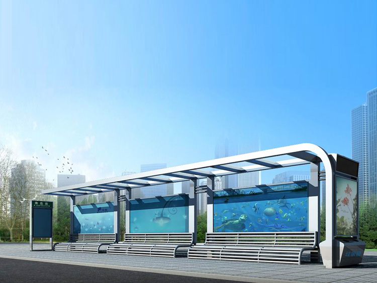 公交車候車亭一般是與公交站牌相配套的,為方便公交乘客候車時遮陽、防雨等,在車站、道路兩旁或綠化帶的港灣式公交停靠站上建設的交通設施。由于城市公交的日益發達,候車亭已發展成為城市一個不可或缺的重要組成部分,設計精美的候車亭也成為了城市一道美麗的風景。 一般候車亭棚體主要頂棚、立柱、頂弓、廣告燈箱和坐凳組成,也有用隔板來代替廣告燈箱的。