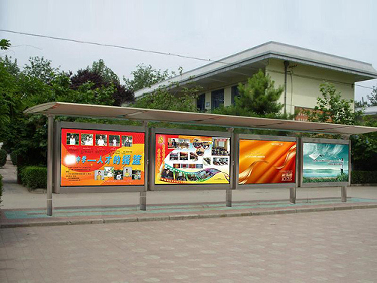 公交車候車亭一般是與公交站牌相配套的,為方便公交乘客候車時遮陽、防雨等,在車站、道路兩旁或綠化帶的港灣式公交停靠站上建設的交通設施。由于城市公交的日益發達,候車亭已發展成為城市一個不可或缺的重要組成部分,設計精美的候車亭也成為了城市一道美麗的風景。 一般候車亭棚體主要頂棚、立柱、頂弓、廣告燈箱和坐凳組成,也有用隔板來代替廣告燈箱的。