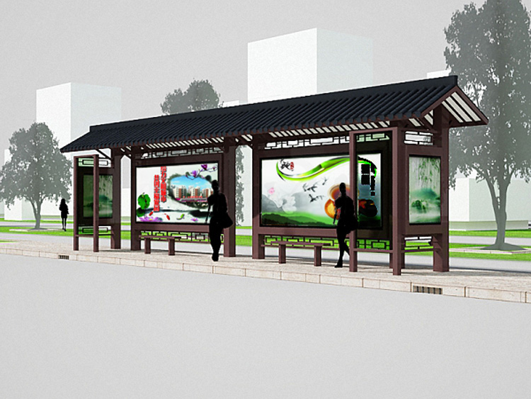 公交車候車亭一般是與公交站牌相配套的,為方便公交乘客候車時遮陽、防雨等,在車站、道路兩旁或綠化帶的港灣式公交停靠站上建設的交通設施。由于城市公交的日益發達,候車亭已發展成為城市一個不可或缺的重要組成部分,設計精美的候車亭也成為了城市一道美麗的風景。 一般候車亭棚體主要頂棚、立柱、頂弓、廣告燈箱和坐凳組成,也有用隔板來代替廣告燈箱的。