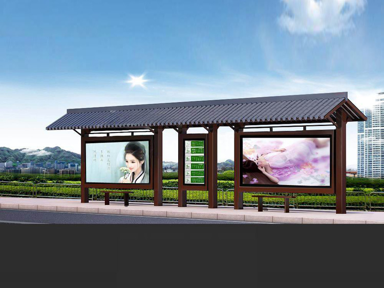 公交車候車亭一般是與公交站牌相配套的,為方便公交乘客候車時遮陽、防雨等,在車站、道路兩旁或綠化帶的港灣式公交?空旧辖ㄔO的交通設施。由于城市公交的日益發達,候車亭已發展成為城市一個不可或缺的重要組成部分,設計精美的候車亭也成為了城市一道美麗的風景。 一般候車亭棚體主要頂棚、立柱、頂弓、廣告燈箱和坐凳組成,也有用隔板來代替廣告燈箱的。