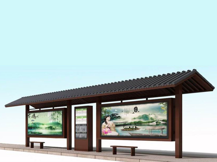 公交車候車亭一般是與公交站牌相配套的,為方便公交乘客候車時遮陽、防雨等,在車站、道路兩旁或綠化帶的港灣式公交?空旧辖ㄔO(shè)的交通設(shè)施。由于城市公交的日益發(fā)達(dá),候車亭已發(fā)展成為城市一個不可或缺的重要組成部分,設(shè)計精美的候車亭也成為了城市一道美麗的風(fēng)景。 一般候車亭棚體主要頂棚、立柱、頂弓、廣告燈箱和坐凳組成,也有用隔板來代替廣告燈箱的。