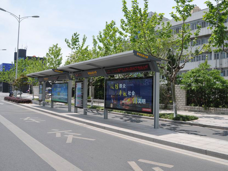 公交車候車亭一般是與公交站牌相配套的,為方便公交乘客候車時遮陽、防雨等,在車站、道路兩旁或綠化帶的港灣式公交停靠站上建設的交通設施。由于城市公交的日益發達,候車亭已發展成為城市一個不可或缺的重要組成部分,設計精美的候車亭也成為了城市一道美麗的風景。 一般候車亭棚體主要頂棚、立柱、頂弓、廣告燈箱和坐凳組成,也有用隔板來代替廣告燈箱的。