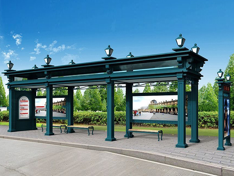 公交車候車亭一般是與公交站牌相配套的,為方便公交乘客候車時(shí)遮陽、防雨等,在車站、道路兩旁或綠化帶的港灣式公交停靠站上建設(shè)的交通設(shè)施。由于城市公交的日益發(fā)達(dá),候車亭已發(fā)展成為城市一個(gè)不可或缺的重要組成部分,設(shè)計(jì)精美的候車亭也成為了城市一道美麗的風(fēng)景。 一般候車亭棚體主要頂棚、立柱、頂弓、廣告燈箱和坐凳組成,也有用隔板來代替廣告燈箱的。
