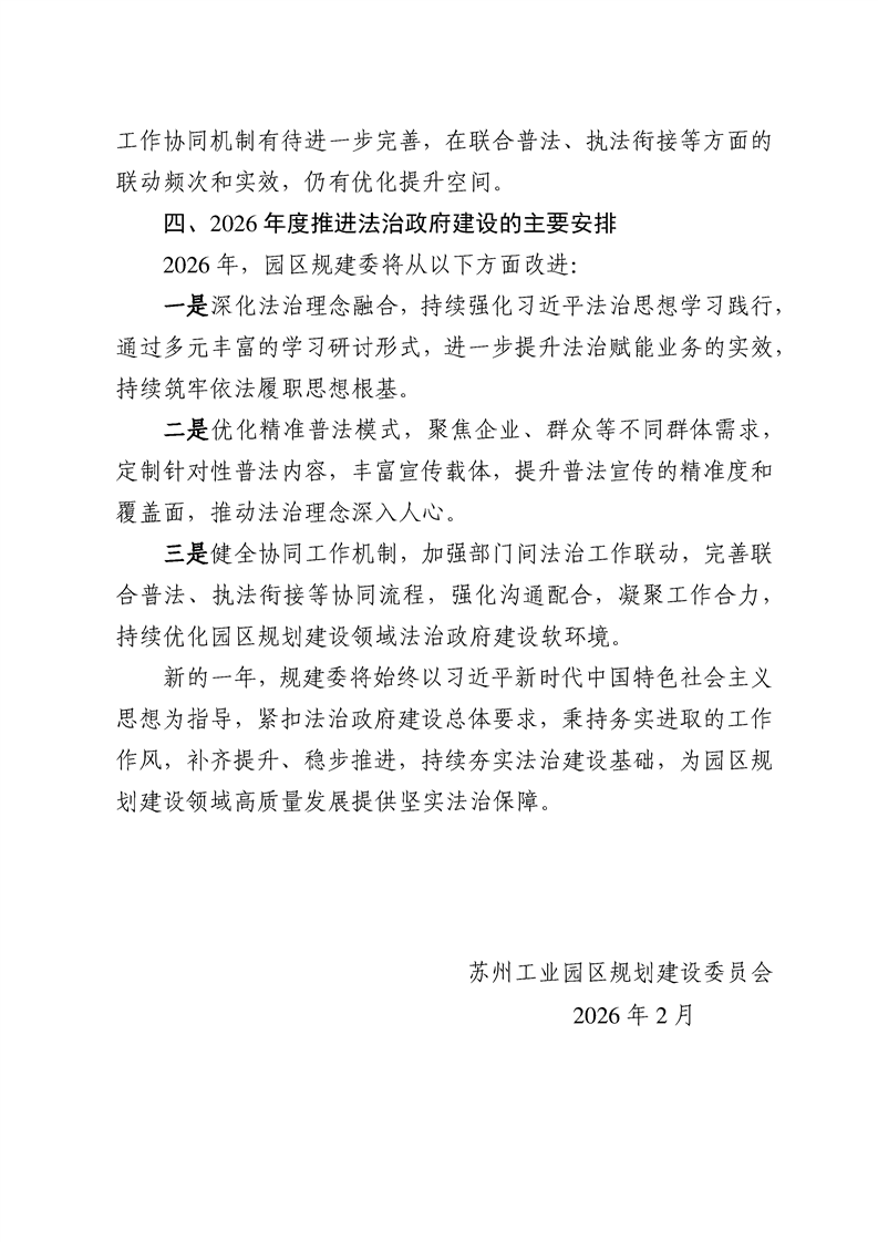 蘇州工業園區規劃建設委員會2025年度法治政府建設情況報告