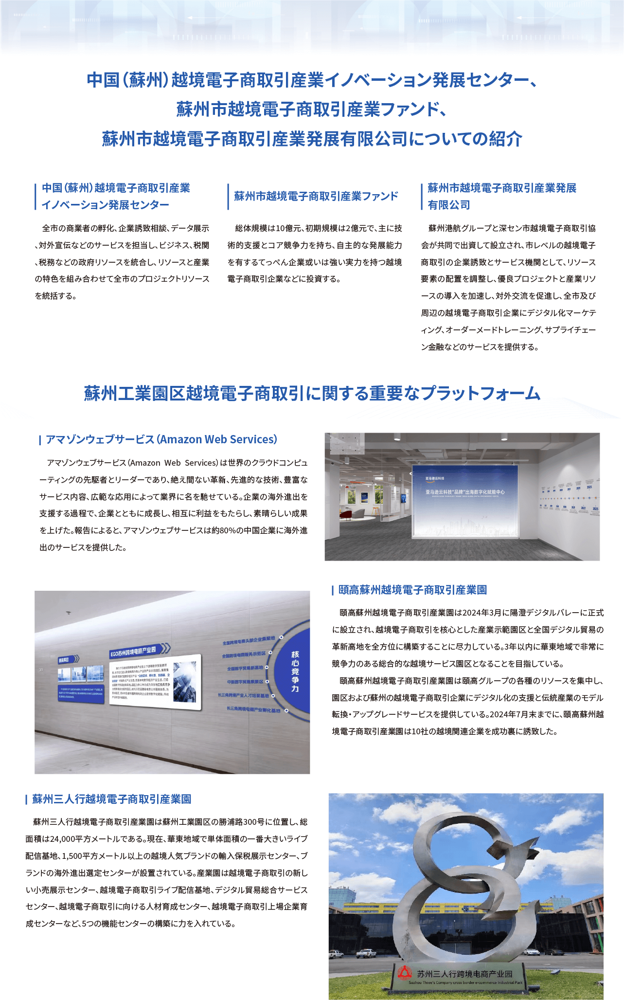 8月20日、蘇州市越境電子商取引「八つの一」推進(jìn)會(huì)並び蘇州工業(yè)園區(qū)越境電子商取引発展會(huì)議が陽(yáng)澄デジタルバレー?南岸新地で開(kāi)催された。中國(guó)(蘇州)越境電子商取引産業(yè)イノベーション発展センター、蘇州市越境電子商取引産業(yè)発展有限公司、蘇州市越境電子商取引産業(yè)ファンドが正式に設(shè)立され、開(kāi)業(yè)した。 イベントの現(xiàn)場(chǎng)では、蘇州市越境電子商取引「八つの一」プロジェクトの始動(dòng)式が行われた。「八つの一」プロジェクトは蘇州市委員會(huì)、蘇州市政府が越境電子商取引に関する総合的なサービス體系を完備させ、良好な産業(yè)生態(tài)を構(gòu)築するための重要な措置である。 會(huì)議では、企業(yè)に商品展示や便利な越境申告などの公益サービスを提供する蘇州工業(yè)園區(qū)越境電子商取引サービスプラットフォームが発表された。 現(xiàn)場(chǎng)では、蘇州工業(yè)園區(qū)越境電子商取引産業(yè)企業(yè)誘致プロジェクトの調(diào)印式が行われた。また、越境電子商取引業(yè)界の代表企業(yè)を招き、それぞれテーマ共有を行った。 蘇州工業(yè)園區(qū)越境電子商取引人材誘致シーズンの正式なスタートに伴い、一連の公益の越境電子商取引人材就職説明會(huì)、人材交流活動(dòng)が全國(guó)...
