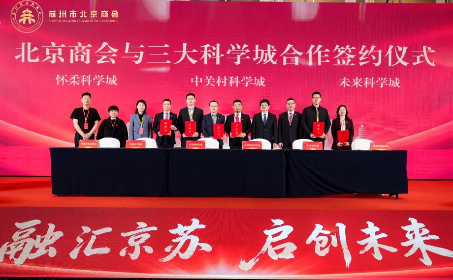 大會では、蘇州市北京商會は中関村科學城、懐柔科學城、未來科學城と戦略的協力を締結し、今後は首都のトップクラスの科學技術イノベーションリソースと連攜し、「京蘇融合」に力強い原動力を注入する。