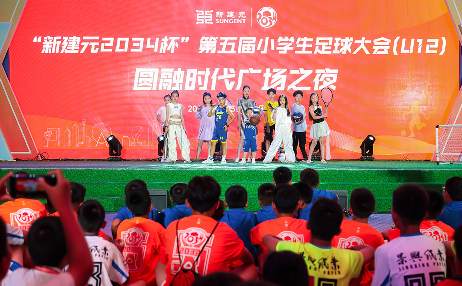 7月23日、「新建元2034カップ」第5回全國小學生サッカー大會(U12)全國決勝戦に參加中の千人以上のサッカー少年たちが、試合の合間を利用して新建元グループ旗下の圓融時代広場を訪れ、競技の激情と文化の魅力が融合した夏の夜の旅を楽しんだ。