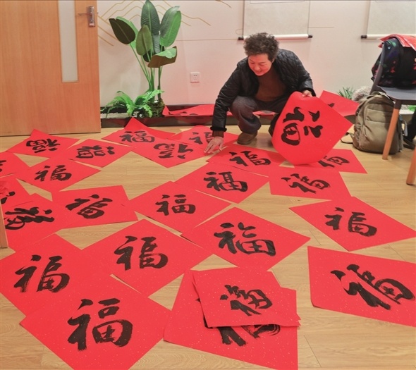 1月8日、園區老年大學書法クラスの教師と生徒たちが松江近隣センターを訪れ、住民のために春聯を書いて祝福を屆けた。