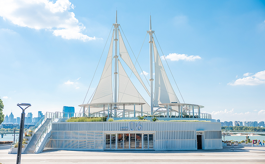 在開發建設30周年之際,園區積極以新載體撬動經濟“新引擎”。金雞湖驛站改造是環金雞湖區域綜合提升工程中的重要舉措。其中,金雞驛06館位于望湖角帆船碼頭,緊鄰金水灣棧橋,定位為集水上運動、餐飲和公共服務為一體的綜合服務設施。驛站頂部設有巨型帆船雕塑,與湖邊停泊的點點帆船,構成了時尚美麗的城市風景線。