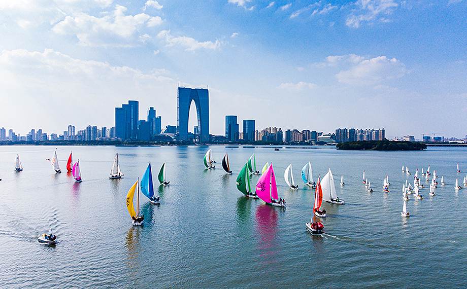 近年來,園區積極舉辦金雞湖端午龍舟賽、江蘇省青少年帆船聯賽、金雞湖皮劃艇和槳板挑戰賽、中國家庭帆船賽、水上運動嘉年華暨蘇州市大眾體育聯賽等多項水上運動賽事,既滿足市民群眾日益增長的健身運動需求,也同步帶動美食娛樂、交通酒店、觀光旅游等多個產業的消費鏈條,讓體育競賽與園區城市文化相融,以賽為媒、以體促城,為城市經濟發展注入了持續動能。