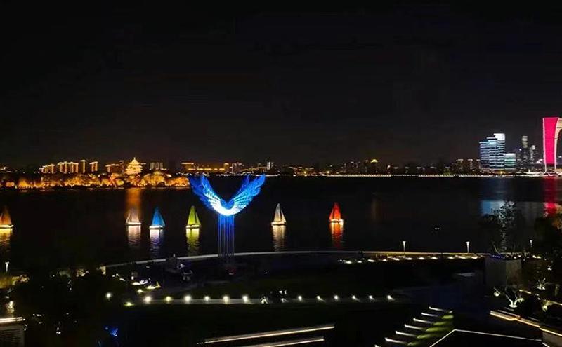 值得一提的是,為提升金雞湖夜景觀賞性,國慶長假和2024體育“兩博會”期間,蘇州八旗帆船俱樂部在金雞湖右岸水域連續推出帆船夜航巡演,結合帆船風格和視覺效果,精心規劃夜航線路,打造夜色金雞湖新亮點。