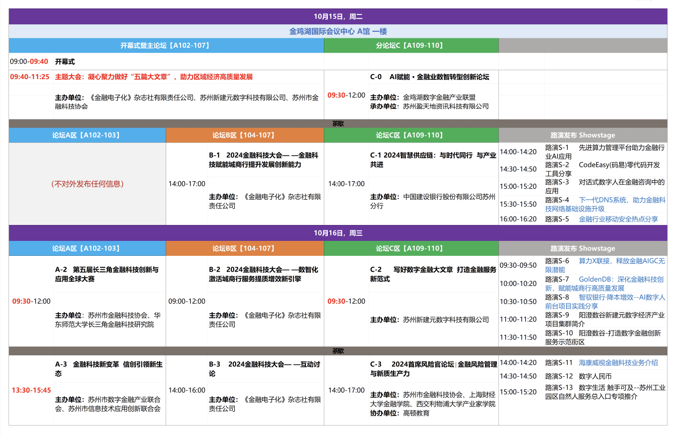 第六屆中新(蘇州)數字金融應用博覽會 | 2024金融科技大會論壇議程概覽