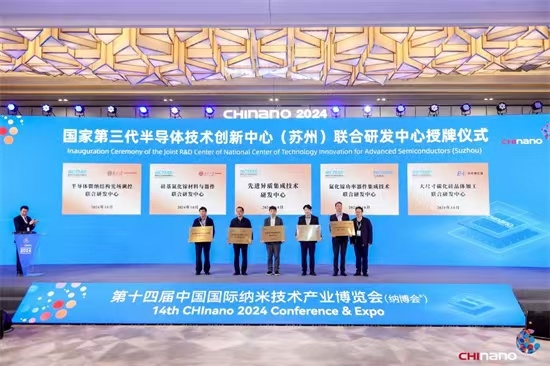 10月23日,第十四屆中國國際納米技術產業博覽會在蘇州工業園區盛大啟幕。開幕式上,國家第三代半導體技術創新中心(蘇州)重大成果發布、國家第三代半導體技術創新中心(蘇州)聯合研發中心授牌、一批高質量項目現場簽約。