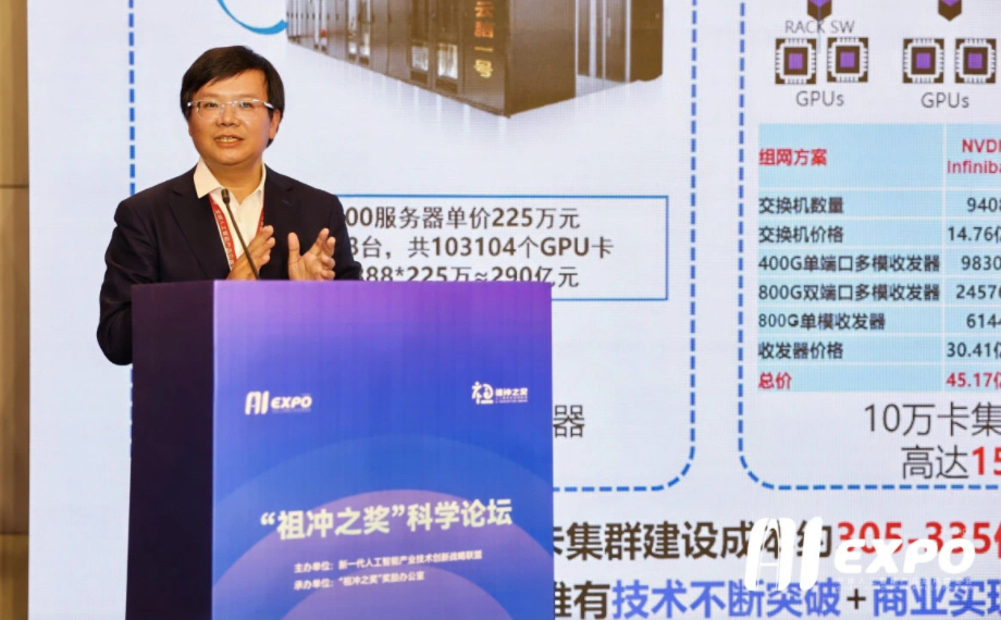 北京大學信息工程學院院長、教授田永鴻就下一代超大規模智能計算集群面臨的機遇與挑戰發表了見解。他認為,隨著大模型演進趨勢逐漸為模型越來越大、數據越來越多、模型精度要求越來越高等,智能算力逐漸發展為人工智能研究與產業發展的核心驅動力和關鍵基礎設施。圍繞建設讓世界信服的超大規模智算集群的實踐經驗和研究探索,他從突破核心芯片封鎖卡點、體系架構探索難題和大規模組網挑戰等層面進行了精彩分享,并面向下一代超大規模智能計算集群建設提出了相關思考。