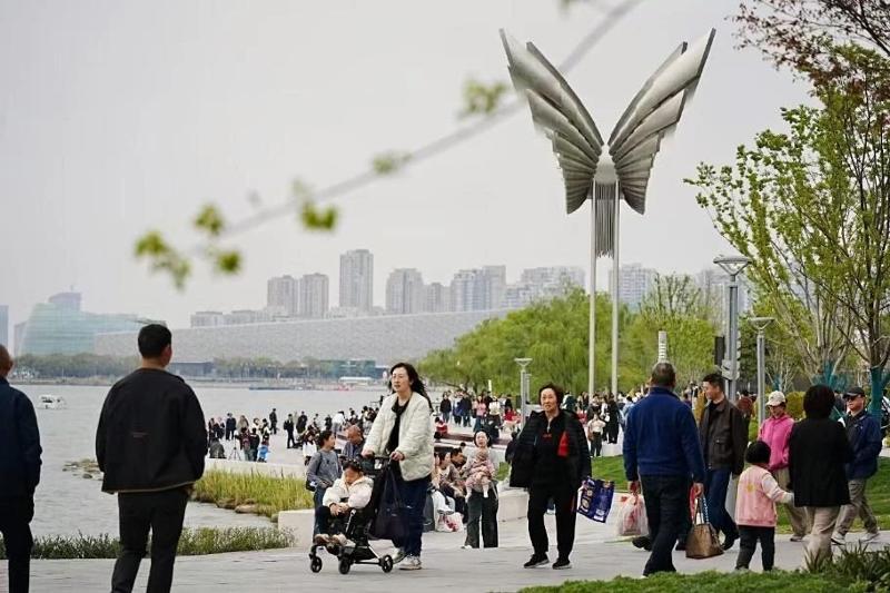 文明是城市的耀眼底色。清明小長假,蘇州城市街頭迎來市民游客交織的熱鬧景象。正是春和景明時,美麗的自然風景是城市給予市民游客的禮物;而漫步城市間,從景區到公共場所,市民游客的文明舉止、禮貌言行則是另一道靚麗風景,彰顯了游人對蘇州的熱愛,成為城市可觸可感的美好記憶。金雞湖右岸,絡繹不絕的人流彰顯出這一新晉“頂流”對市民游客的巨大吸引力。作為蘇州新的城市地標,“蘇州之眼”摩天輪在小長假期間迎來一波“大流量”,其以充滿科技感、現代感的體驗,讓游人感受蘇州的現代發展和浪漫情懷。傍晚時分,來自常州的吳女士一家正有序排隊,等待“登艙”?!扒岸螘r間‘蘇州之眼’在小紅書特別火,趁著假期趕緊來打卡,而且特意選擇了可以在摩天輪上看日落的時段。來之前還擔心人多擁擠,但現場大家排隊非常有序,工作人員也很周到熱情,體驗感蠻好的。”與“蘇州...