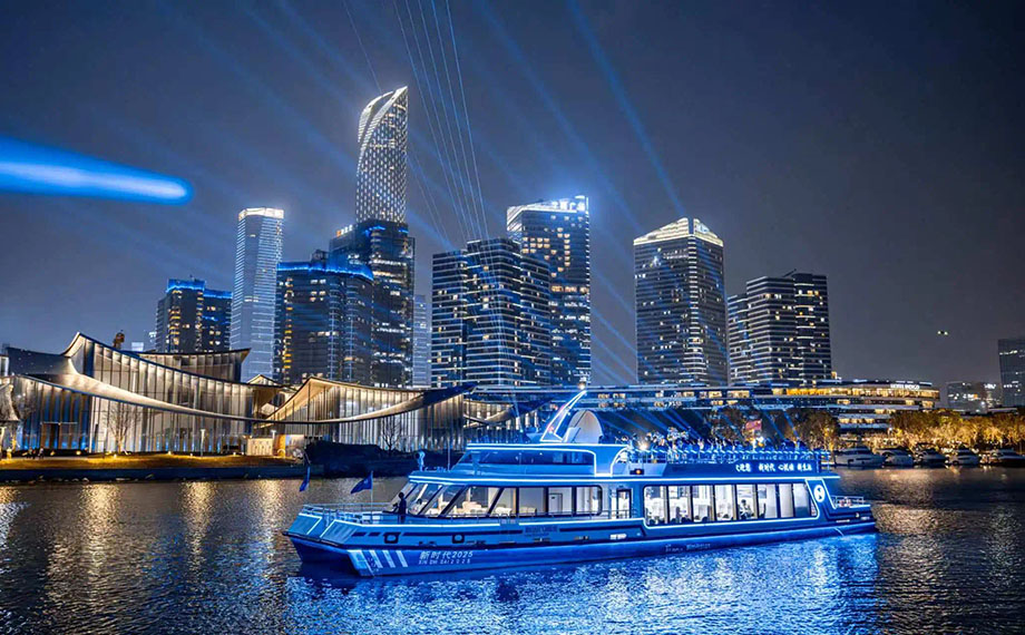 來蘇州工業園區,怎么玩?這次不走“尋常路”,走水路!金雞湖畔,一場以“水”為媒的文旅狂歡正席卷蘇城,園區以獨特視角鋪展“水陸共生”藍圖,為游客帶來別具一格的水上游體驗??萍碱I航,暢享舒適游船之旅伴隨“蘇州之眼”摩天輪落成試運營的春風,新時代集團精心打造的兩艘“金雞湖號”雙體游船,與右岸新航線一同華麗登場?!敖痣u湖號”雙體新游船是科技與旅游融合的典范。它參考歐洲熱門游船船型設計,船長31.5米,寬8.3米,額定載客92人,集游覽觀光、休閑娛樂功能于一身。該船采用柴電動力系統,搭載科勒發電機組、719所專利水冷電機和ABB變頻器,兼具速度與靜謐,最高時速達16公里?!跋啾葌鹘y游船,新游船行駛得更加平穩,而且船上沒有汽油味和噪音?!庇慰蛡兗娂婞c贊。走進游船,一層客艙寬敞舒適,全景玻璃帶來通透視野,金雞湖美景盡收眼底;登上二層露天觀光甲...