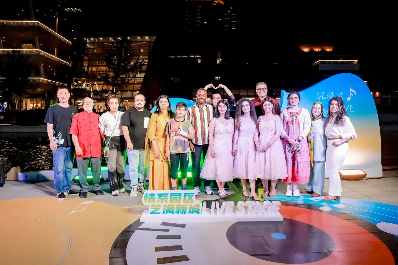 在圓融天幕街,每周上演的“藝術盲盒”演出正重新定義公共空間屬性。2025年煥新升級的“YI說園區”Live Stage,通過三維沉浸式藝術現場打破觀演邊界,百米天幕與電子音浪交織,爵士樂與暮色共舞,吸引數千市民共享藝術之夜。活動創新設立的“煙火民星”計劃,讓科研人員、醫護工作者等普通市民成為舞臺主角。在五月的“情系園區 藝滿新城”活動中,在蘇外籍友人與本地藝術愛好者的跨文化演繹,更彰顯園區“國際范”與“江南韻”的共生魅力。