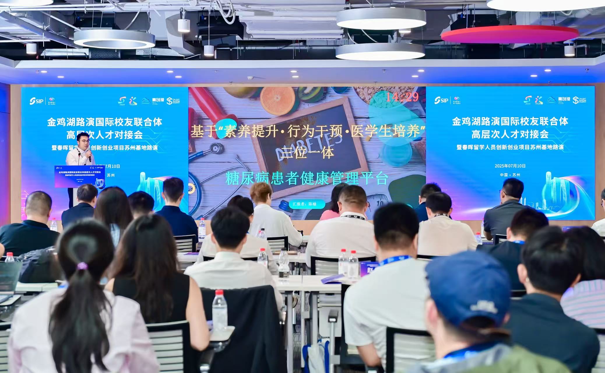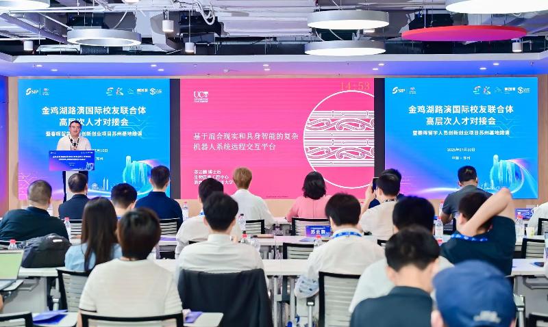 7月10日,2025第十七屆蘇州國際精英創業周園區分會場分項活動——金雞湖路演國際校友聯合體高層次人才對接會暨春暉留學人員創新創業項目蘇州基地路演在國際人才港舉辦。八大國際校友組織助陣全球引才,來自7個國家(地區)的9個海內外博士創業項目,聚焦人工智能、生物醫藥、高端制造等戰略新興領域,上演科技創新盛宴,實現“全球匯智”與園區產業發展需求的精準對接。