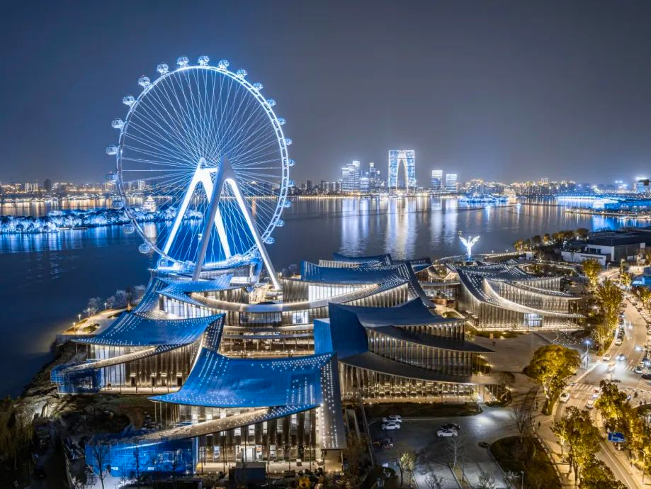 金雞湖以“一生一世”為主題,將浪漫進行到底。13.14公里的環湖步道成為攜手漫步的絕佳路線,在李公堤“中法愛墻”登記結婚并免費搭乘“蘇州之眼”摩天輪和泛舟桃花島的禮遇,則為這份浪漫更添了一些儀式感。