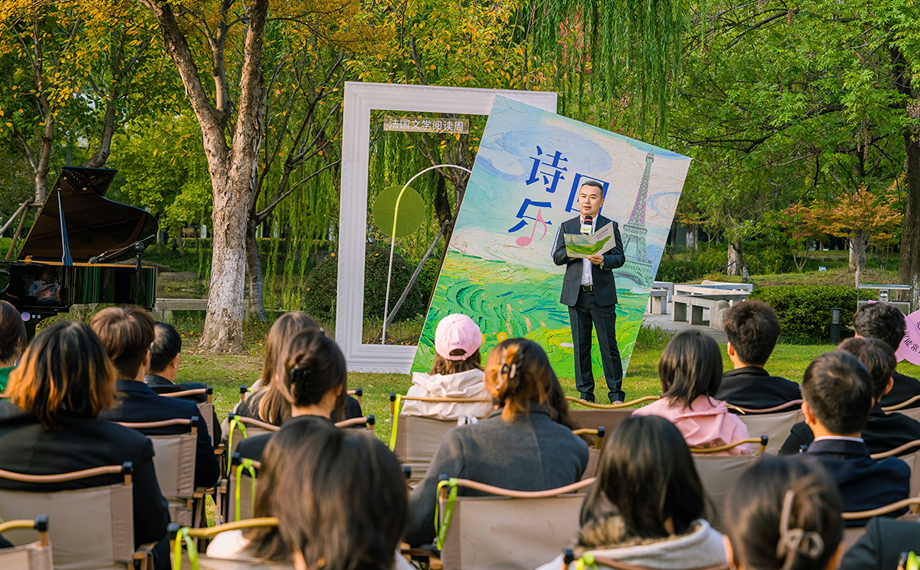 此外還有“詩樂回響”湖畔朗誦會在獨墅湖畔戶外草坪溫情上演。高校師生、文學愛好者齊聚于此,誦讀雨果、拉封丹等法國文豪的經典篇章,搭配《浪漫曲》《梁祝》等中法名曲,鋼琴與圓號的旋律縈繞湖畔,讓文字與音符跨越語言壁壘,在波光粼粼的湖岸線旁,奏響中法藝術共鳴的動人樂章。
