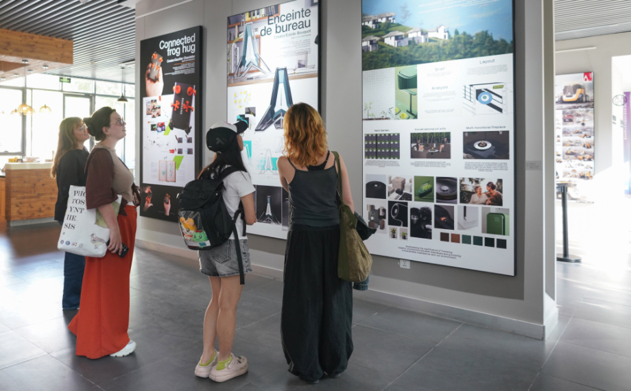 藝術(shù)周開幕當日,“中法青年設(shè)計師邀請展”在明?美術(shù)館啟幕,70余件中法兩國新銳設(shè)計師作品,直觀呈現(xiàn)青春創(chuàng)意,為城市生活與未來發(fā)展注入的全新活力。園區(qū)高校大學生駐足參觀,他們表示:“這些作品涵蓋視覺設(shè)計、產(chǎn)品設(shè)計、動畫設(shè)計等領(lǐng)域,與我們的專業(yè)高度契合,不僅能激發(fā)創(chuàng)作靈感,更讓我們直觀感受到設(shè)計在城市發(fā)展中的重要價值,也見證了中法青年藝術(shù)創(chuàng)意的碰撞火花?!?/p>