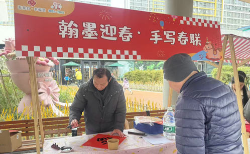 社區(qū)深挖中華優(yōu)秀傳統(tǒng)文化內(nèi)涵,將寫(xiě)春聯(lián)、送福字、做中國(guó)結(jié)等傳統(tǒng)民俗活動(dòng)與基層治理深度結(jié)合,以文化浸潤(rùn)凝聚鄰里共識(shí),激活社區(qū)治理新動(dòng)能。市集的文化體驗(yàn)區(qū)翰墨飄香、暖意融融,社區(qū)特邀書(shū)法志愿者現(xiàn)場(chǎng)揮毫潑墨,一副副筆力遒勁、寓意吉祥的春聯(lián),一個(gè)個(gè)圓潤(rùn)飽滿、飽含祝福的“福”字接連誕生,既有傳統(tǒng)佳句的雅致韻味,也有貼合社區(qū)治理、鄰里和睦的美好期許,居民們有序排隊(duì)挑選,在墨香氤氳中感受新春喜悅、凝聚鄰里溫情。另一邊的中國(guó)結(jié)制作區(qū)同樣熱鬧非凡,志愿者耐心細(xì)致地講解中國(guó)結(jié)的文化內(nèi)涵與編織技法,居民們圍坐在一起,穿繩、繞線、牽拉、打結(jié),一根根紅繩在指尖靈活穿梭,一個(gè)個(gè)造型精美的中國(guó)結(jié)漸漸成型,歡聲笑語(yǔ)間,鄰里情誼愈發(fā)濃厚,社區(qū)凝聚力進(jìn)一步增強(qiáng)。