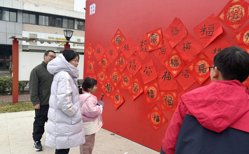 廣場一側,一面巨大的簽到墻等待著居民們書寫新年的憧憬。紅色的墻面上,金色的字熠熠生輝,仿佛在向每一位到來的居民傳遞著新春的祝福。居民們有序地來到簽到墻前,拿起筆,在墻上鄭重地寫下自己的新年祝福。有的寫下對家人健康平安的期許,有的表達對社區發展的美好祝愿,還有的寄語祖國繁榮昌盛……每一筆每一劃,都飽含著對未來的憧憬與希望。簽到完成后,居民們領取了新年集福打卡券,開啟新春歡樂之旅。