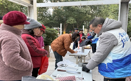理發、磨刀、掃塵,熱熱鬧鬧迎新年??谇涣x診、用藥咨詢、理發、磨刀、維修小家電……活動現場的各個便民服務攤位前都擠滿了居民。金科物業為居民們提供義務洗鞋、清洗地墊服務,紅色管家志愿者為居民們提供理發、磨刀磨剪、維修小家電、禁燃禁放宣傳等服務?!熬珳手稀彼幨路請F隊為居民們提供用藥咨詢等服務。孩子們開心地玩起了垃圾分類趣味小游戲,活動現場熱鬧非凡,年味十足。