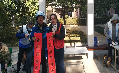 為了向仍然堅守在工作崗位上的新業態新就業群體表達關心與慰問,沁苑社區黨總支貼心地準備了暖“新”禮包放在活動現場,送給快遞外賣小哥和家政人員。紅色管家志愿者們還特別準備了對聯和福字,給新業態新就業群體送去新春的祝福。來小區派件的快遞小哥不僅可以享受理發、義診、法律咨詢等免費服務,還可以領取一份愛“新”滿滿的暖冬大禮包。