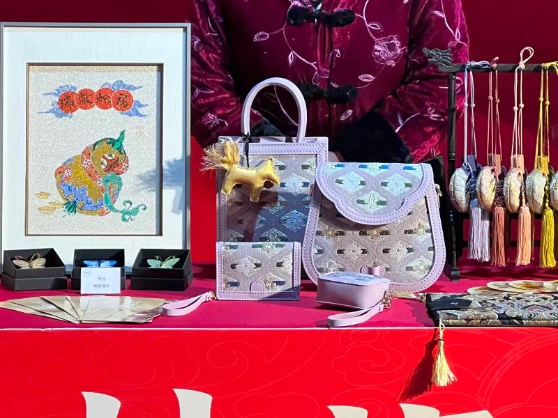 此次參展,仁和織繡充分結合蛇年、非遺等主題,帶來了一系列兼具藝術價值和實用功能的新品,并搭配傳統的福字擺件、香囊等產品傳遞濃濃的新春祝福。現場的緙絲“學習機”也吸引了眾多市民游客參與體驗?!拔覀儗⒊浞职l揮非遺傳承保護單位的優勢,聚焦非遺做好宣傳、推廣,以及色彩教育的科普工作?!敝x晴容介紹說。