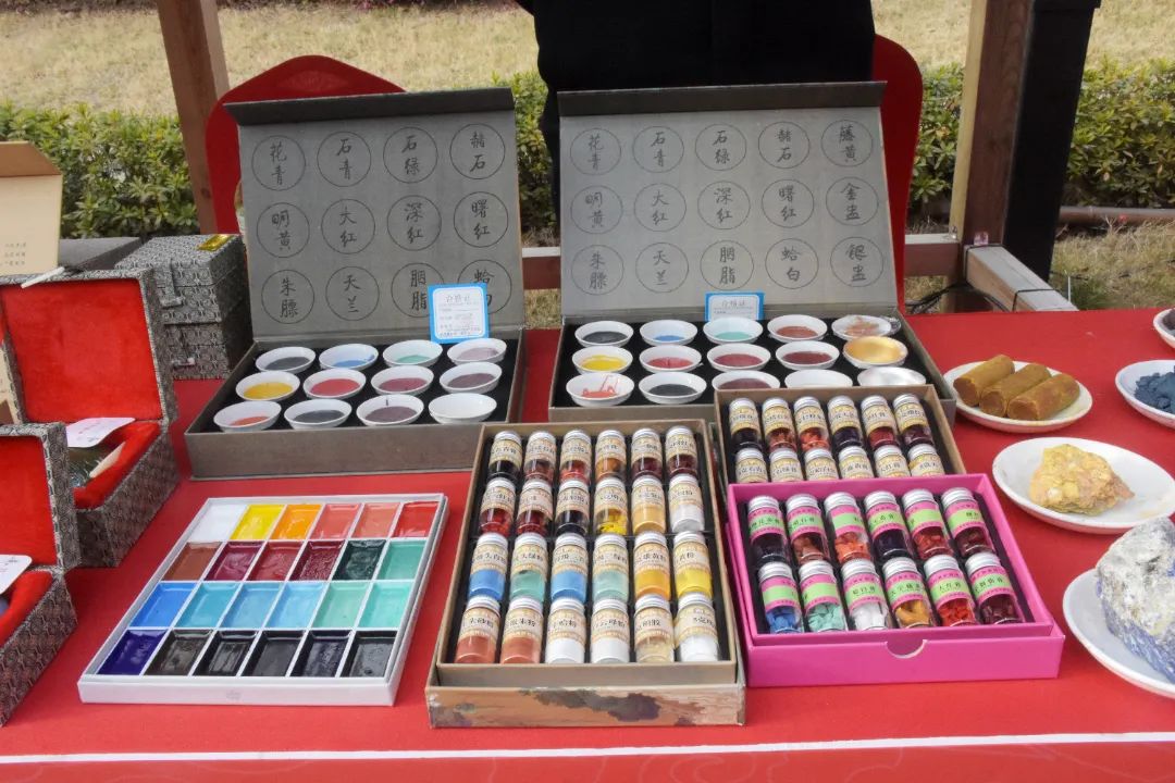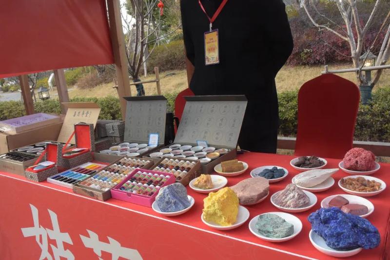 此次大會,張佰林不僅帶來了各色原材料,還帶來了多款針對不同用戶需求的12色國畫顏料,以及印泥、礦石標本等品類的相關產品?,F場,他還積極與大家分享國畫顏料制作的工藝流程和產品特色,并邀請有興趣的市民游客去工廠體驗。