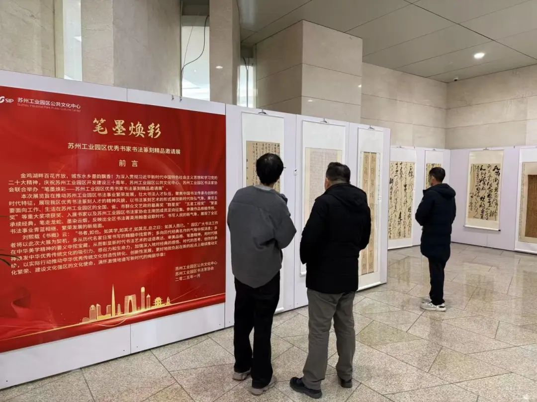 金雞湖畔,由園區公共文化中心、園區書法家協會聯合舉辦的筆墨煥彩——蘇州工業園區優秀書家書法篆刻精品邀請展同樣墨韻飄香。